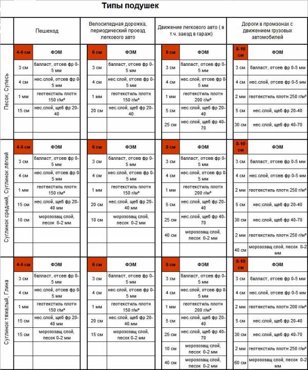 заезда автотранспорта — толщина покрытия должна быть 4 см и более - для покрытия, где возможен заезд легкового автотранспорта — толщина покрытия должна 6 см и более