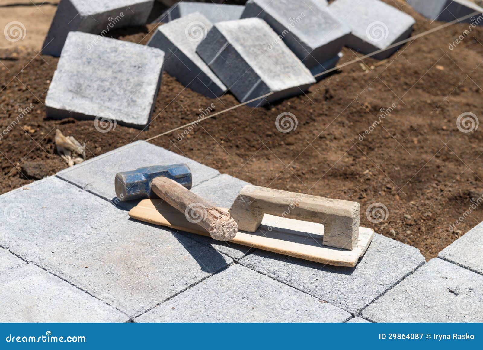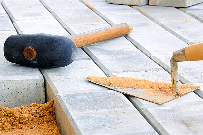 При наличии всего инструмента можно приступать к укладке тротуарной плитки своими руками.