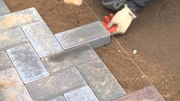 - кладка ведется методом от себя. Т.е., выполняя работы, мастер движется по уже уложенной дорожке, чтобы не повредить утрамбованное и выровненное основание;