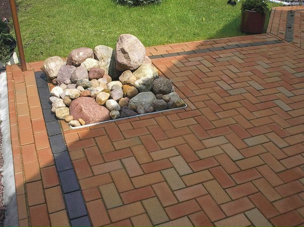 Значительные возможности для маневра создает использование тротуарной плитки прямоугольной формы, со стандартными размерами 100х200 мм, типа «брусчатка» или «кирпичик». Они дают наибольшее количество вариантов укладки.