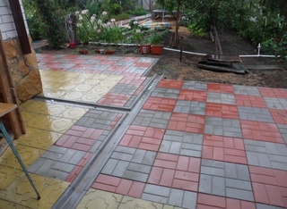 - Плитка. Выбирая плитку нужно знать, что по способу изготовления бывает вибролитая (возможно самостоятельное изготовление) и вибропрессованная (делается в промышленных условиях).