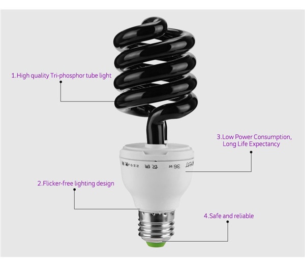 Затем пациента обрабатывают УФ-излучением. Другим вариантом лечения является использование только УФБ (без лекарств). - Лампы черного света: В этих лампах используются лампы, испускающие УФ-лучи (в основном УФ-А). Лампа также излучает видимый свет, но у нее есть фильтр, который блокирует большую его часть, пропуская при этом УФ-лучи. Эти лампочки имеют фиолетовое свечение и используются для просмотра флуоресцентного материала. Ловушки для насекомых также используют «черный свет», который испускает некоторое количество ультрафиолетовых лучей, но лампы используют другой фильтр, который заставляет их светиться синим цветом.