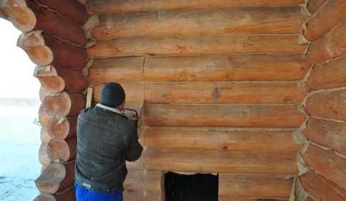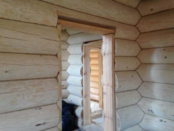 Если дверной проем запроектирован заранее, при монтаже сруба на его месте монтируют нецельные венцы. В этом случае подготовка заключается в срезании лишних выступов из бруса или бревна по предварительно выполненной разметке. Проем выпиливают и в цельной стене из бревна или бруса, используя бензопилу.