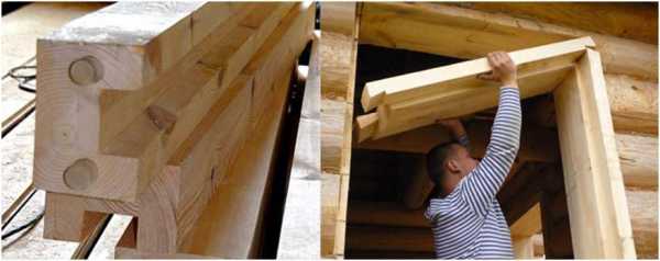 Обсадная коробка – «скользящая» конструкция. На боковинах проема вырезается по гребню, на которые надевают лафеты с пазом соответствующих размеров. Вверху к лафетам крепится поперечная планка. В результате в проеме установлена рама, которая не изменит свою геометрию при усадке сруба. Ее нельзя жестко крепить к стенам. Обратите внимание: рама должна располагаться строго вертикально.