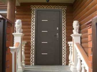 - Огнестойкость. Металлическая дверь относится к негорючим материалам, что актуально для деревянных построек.