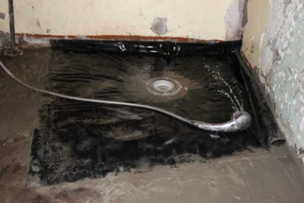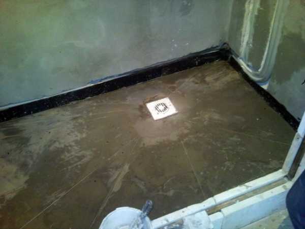 Поскольку планируется «мокрая» работа, а именно заливка бетона, начать надо с гидроизоляции. В зависимости от типа перекрытия и финансовых возможностей владельцев выбирают рулонный материал или мастику. В любом случае поверхность должна быть полностью защищена от влаги, это касается пола и стен на 10–20 см выше предполагаемого уровня.