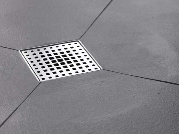 Основная характеристика устройства понятна из его названия – небольшой размер. Как правило, видимая часть устройства – это квадрат со сторонами порядка 15 х 15 см, но бывают и модели оригинальной формы, круглые или овальные. Это идеальный трапик для душа под плитку в случае небольшой кабинки.
