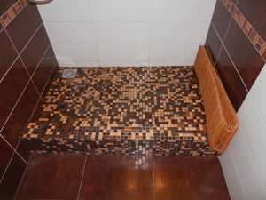 Поднятую на нужный уровень поверхность сушат до полного застывания и только после этого выполняют отделочные работы. В основном для отделки используют кафель. Работу ведут от трапа к стенам. Оставляют до полного застывания. Далее окончательно собирают слив, устанавливают декоративную решетку, и можно монтировать душ.