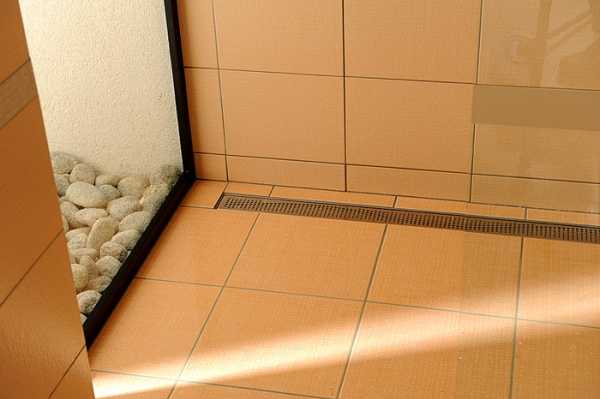 Обратите внимание! Еще одной оригинальной конструкцией является скрытый щелевой слив. Он может быть реализован как щель вокруг одной из плиток пола.