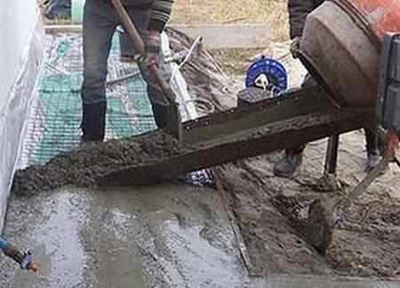 - Заливка бетонной смеси. Работы выполняются в течение одного дня. Если сделать перерыв в местах прекращения работы, в дальнейшем появятся трещины. Для приготовления качественного раствора необходима бетономешалка. Работу по заливке выполняют по деформационным отсекам. После укладки бетона его разравнивают. Для полного застывания понадобится 28 дней. В течение этого срока осуществляют уход за бетоном: периодически стоит разбрызгивать на поверхность воду с помощью распылителя. Применение сильной направленной струи недопустимо.