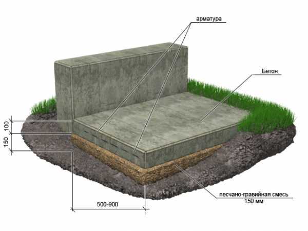 Дальше на землю укладывается геотекстильное покрытие (в большинстве случаев в его качестве используется рубероид), а еще обустраивается опалубка. Периметр дополнительно армируется, а бетонная смесь, созданная в соответствующей пропорции, помещается в опалубку.