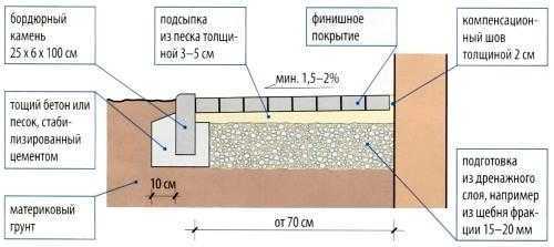 Схема отмостки – это два ее основных слоя: подстилающий слой и слой покрытия.