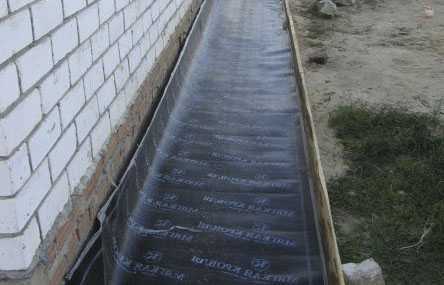 - Всевозможные полимерные средства для размещения слоя гидроизоляции между отмосткой и фундаментом.
