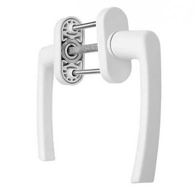 Замок таковой конструкции имеет две ручки, расположенные с различных сторон балконной двери, и соединенный меж собой единым запорным устройством.