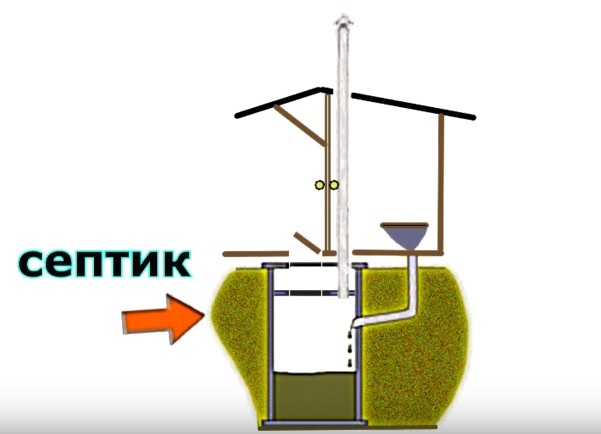 Сделать сооружение с полноценным сливом и септиком, как при обустройстве автономной канализации, проблематично.