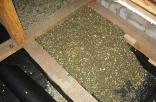 Технология закладки всех сыпучих материалов примерно одинакова, хотя есть и различия. Сначала потолок тщательно убирают, избавляясь от мусора и посторонних предметов. Потолок необходимо качественно подмести, после этого на доски или бетон укладывают слой паро- или гидроизоляции.