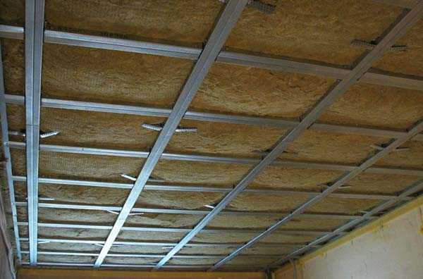 Работы чаще проводят со стороны чердака. В силу малого веса материала, этот метод может быть применен для деревянных подшивных потолков.