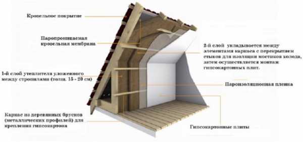 Утепление потолка мансардной крыши должна состоять из 5 слоев, наличие каждого из них обязательно: