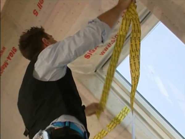 Пленка прибивается степлером изнутри мансарды, гладкой стороной к утеплителю. Ее стыка плотно склеиваются при помощи скотча. Это позволяет достичь максимальной плотности прилегания материала друг к другу без возможности проникновения воздуха, содержащего пар.