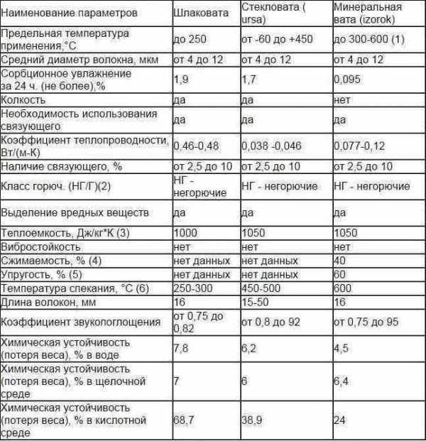 Таблица: сравнительная характеристика различных утеплителей и требуемой толщины в зависимости от теплопроводности