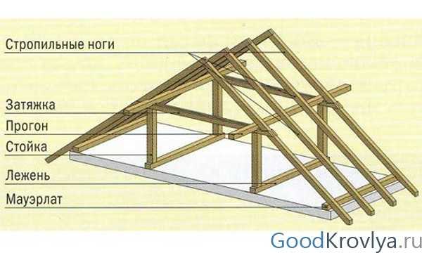 - Поверх стропил набиты горизонтальные деревянные рейки, на которых уложен последний слой толщиной 50 мм;