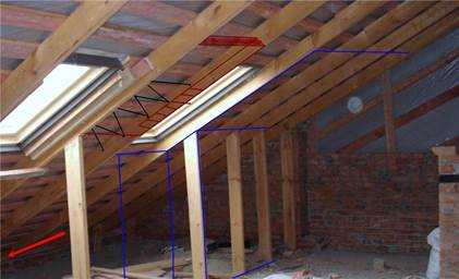 - в случае необходимости прибиваем сверху дополнительные брусочки для увеличения высоты стропил. На них размещаем гидроизоляционный слой и накрываем всё досками (черновым полом).