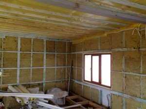 В зависимости от выбранного утеплителя, начинаем его равномерно распределять по полу, а также стенам и потолку, если же это, конечно, не керамзит или опилки.