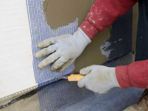 Финишную отделку фасада можно начинать только после армирования утеплителя. Закрепленная на нем сетка предотвратит растрескивание декоративного покрытия. Кроме того, она сделает конструкцию более монолитной. К стене приклеивают материал с поверхностной плотностью 150 г/м².