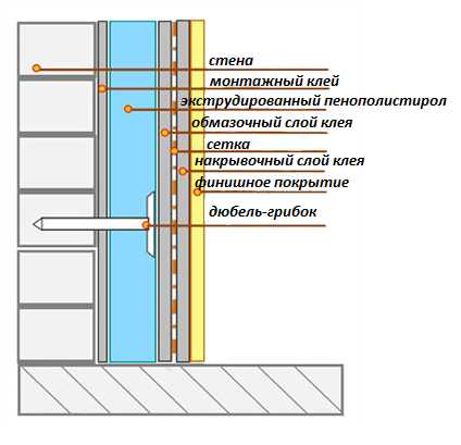Схема утепления наружной стены стирэксом