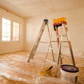 Прежде, чем приступить к основной части работы, стоит позаботиться о сохранности чистоты мебели и не окрашиваемых поверхностей (двери, окна, пол), можно укрыть их пленкой.