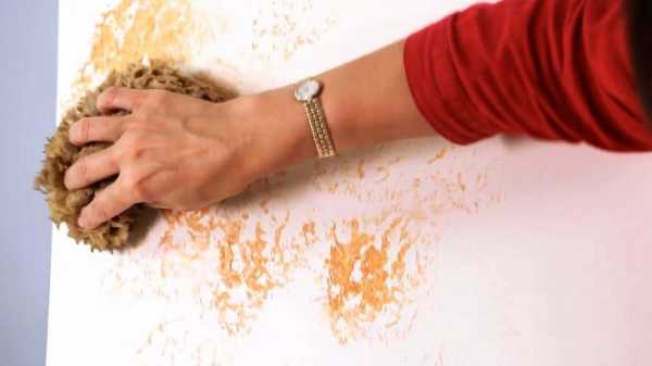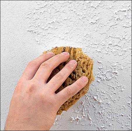 №2. Смоченная в краске пористая или синтетическая губка, слегка отжимается и прижимается к стене.