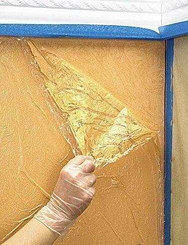 №4. К свежей краске прикладывается целлофан, разглаживается и отрывается от стены.
