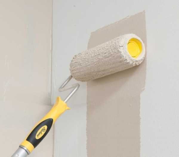 - Грунтование стен. Рекомендуется процедуру повторить дважды, чтобы увеличить адгезию и уменьшить расход краски.