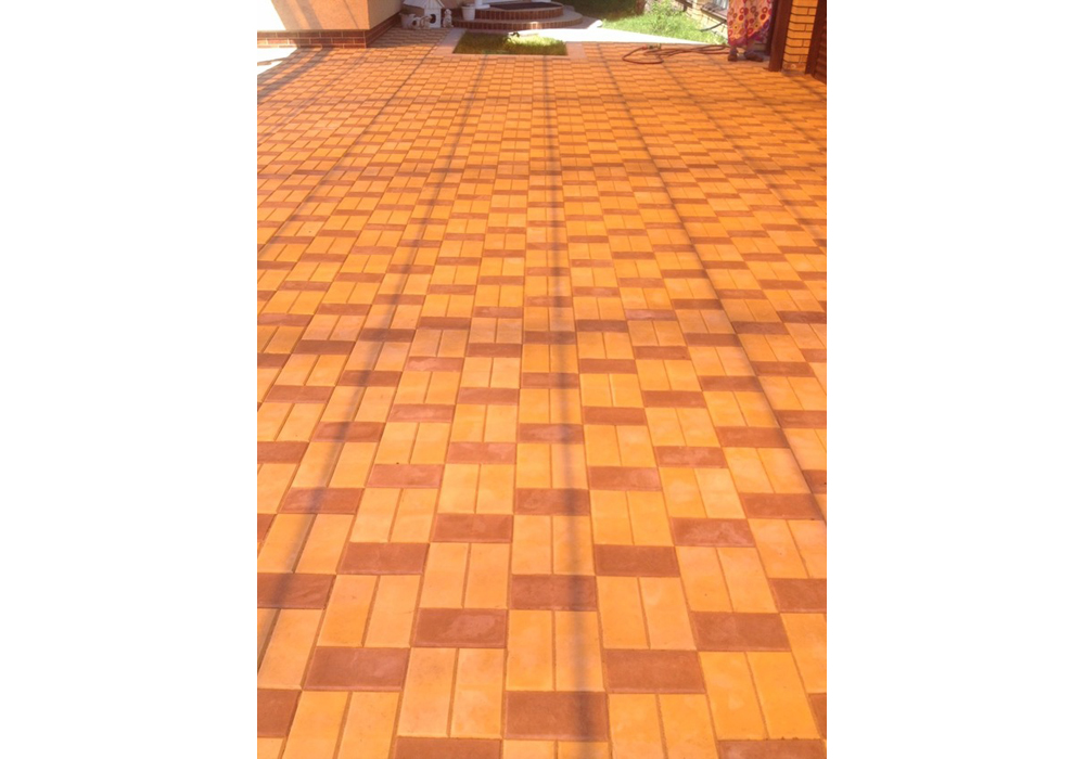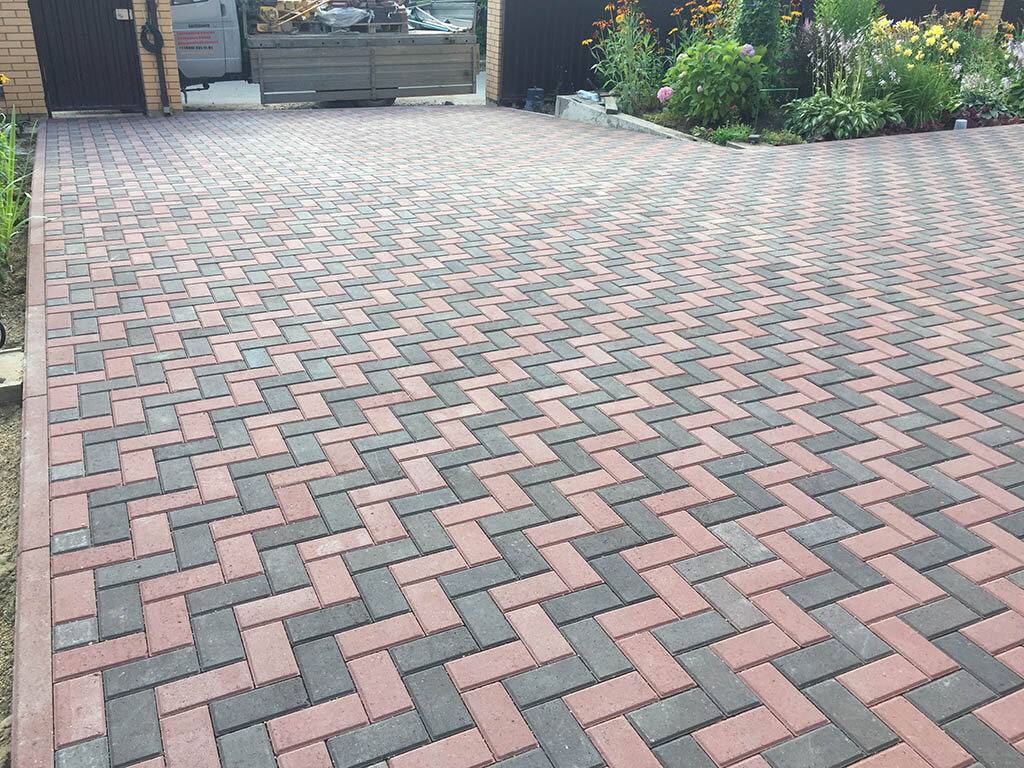 Для линейно-угловой схемы подойдет тротуарная плитка «Кирпичик»