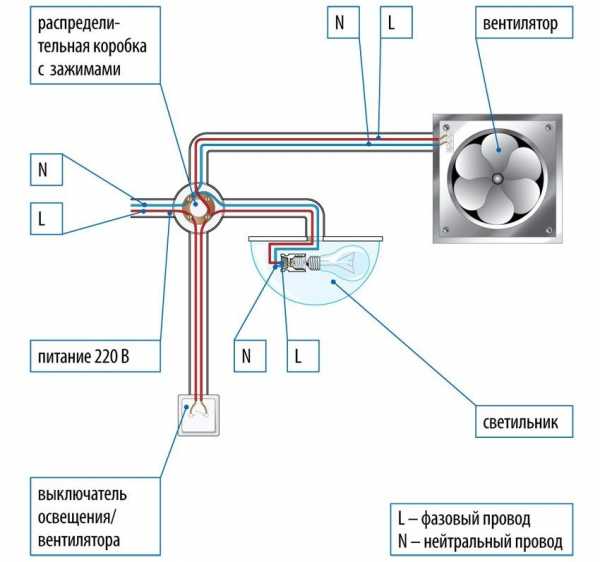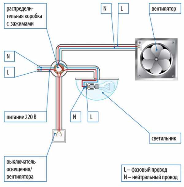 Если вентилятор устанавливается в уже построенном помещении, то проводку можно протянуть от лампочки или выключателя, если же помещение только строится, то стоит не забыть проложить лишнюю пару проводов для вентилятора.