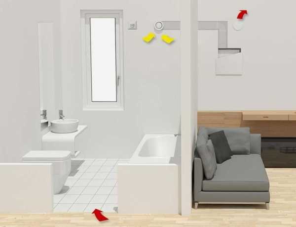 Хорошая циркуляция воздуха позволяет нормализировать уровень влажности внутри помещения и предотвратить проникновение пара в жилые комнаты через щели в дверях. Монтаж бесшумного вентилятора с обратным клапаном позволит все это осуществить.