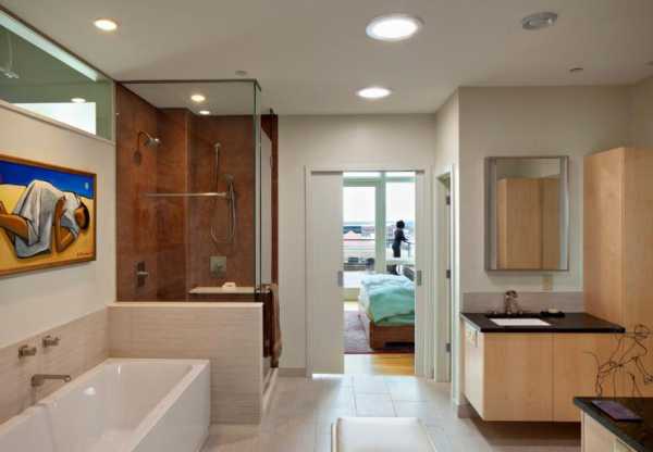 - Так как речь идет о ванной комнате, то следует позаботиться о защите от влаги. То есть устройство должно иметь влагозащищенный корпус, чтобы брызги от душа не привели к короткому замыканию.
