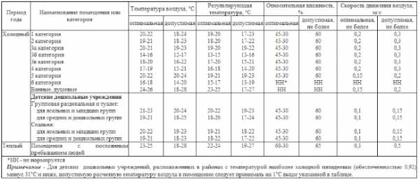 Процентное содержание влаги в воздухе отличается в осенне-зимний и весенне-летний период. В тёплое время года, оптимальное содержание влаги в жилом помещении составляет от 30 до 60%. Максимально допустимым значением является 65%. В период дождей и заморозков, эта цифра колеблется от 30 до 45%. Пиковое значение влажности в осенне-зимний период составляет 60%.