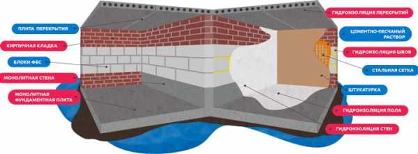 Жидкая проникающая гидроизоляция используется при выполнении следующих мероприятий: