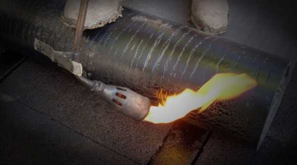 В случае наплавления перед креплением рубероида необходимо обработать защищаемую поверхность специальной битумной мастикой или праймером. Полотна рубероида, разогретые при помощи газовой горелки, прикладываются к вертикальной поверхности.