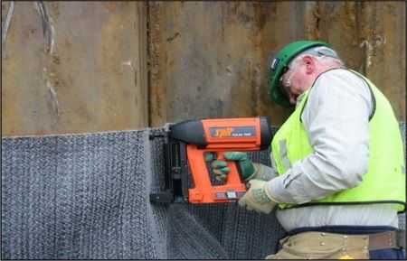 Крепление глиняных матов осуществляется посредством специальных дюбелей. Укладка производится с нахлестом в 15 см. Вдоль закрепленных матов оборудуется прижимная бетонная стенка, которая не позволит матам разбухнуть.