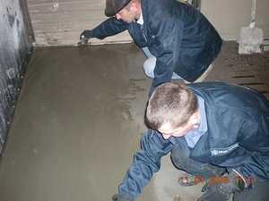 Гладкую поверхность следует обработать песком под высоким давлением, а затем нанести на нее соляную кислоту, разведенную в соотношении 1:10. Это необходимо для того, чтобы поры бетона открылись.