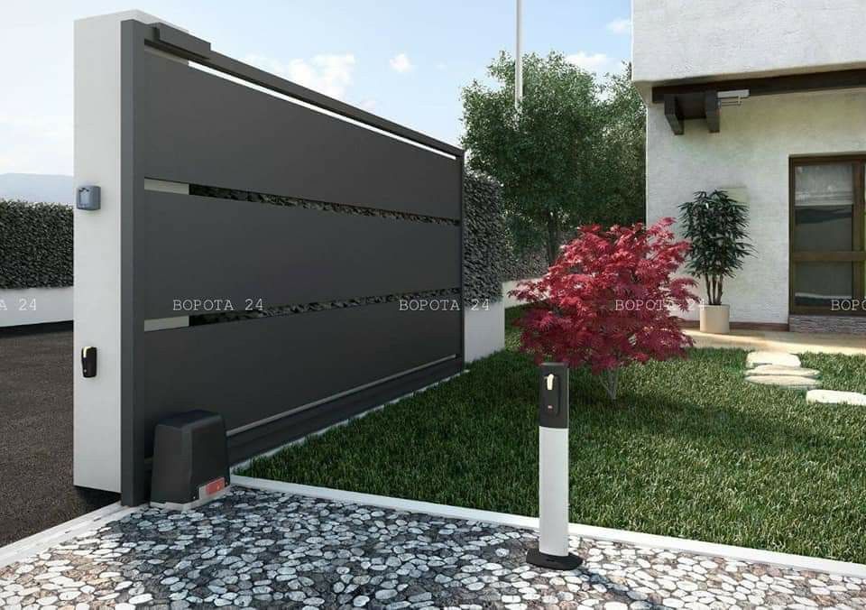 Преимущество сдвижных ворот, это то, что они не занимают свободное пространство огороженной территории и обеспечивают дополнительную шумоизоляцию.