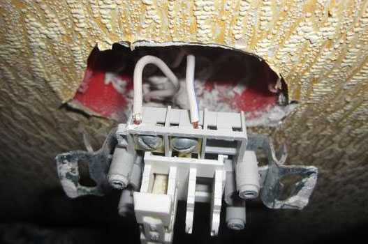 В самом конце, подключаете выведенные провода на потолке к люстре или другому светильнику.