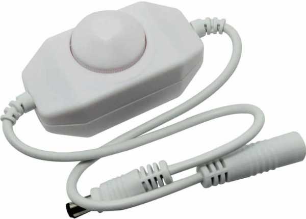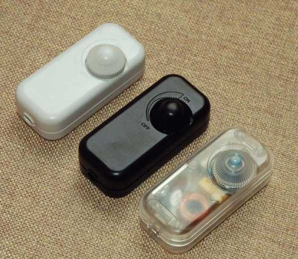 - На шнуре – это мини-устройства, предназначенные для регулирования освещения приборов, включаемых в розетку – настольных ламп, бра, торшеров. Работают совместно с лампами накаливания.