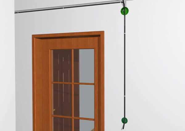 В длинном коридоре или проходной комнате обычно подключается схема с двумя проходными выключателями. Включение и выключение света производится с разных концов коридора или комнаты. При этом используются проходные выключатели.
