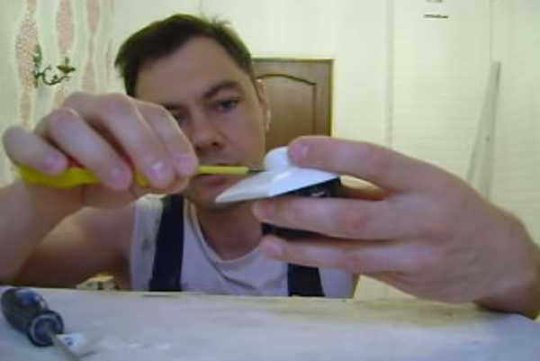 А затем, открутив скрытую гайку или винтики отверткой, снимается пластиковый корпус.