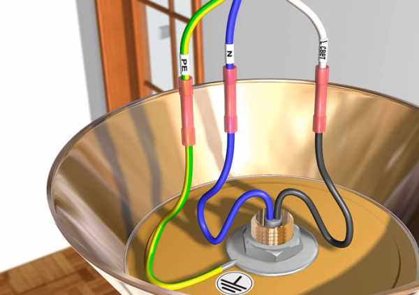 Заземляющий проводник обязательно используется, если у вашей люстры или светильника металлический корпус. Когда материал пластик, то жилу Pe можно не подключать, но ее все равно желательно прокладывать.