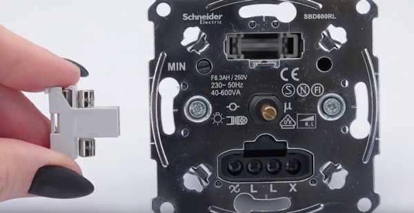 - Фиксация корпуса диммера в стенках монтажной коробки
