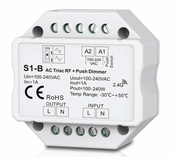 Для светодиодных ламп нельзя использовать тот же диммер, что для галогеновых и ламп накаливания, рассчитанный на определенный тип нагрузки. Большинство из светодиодных, а также люминесцентных и энергосберегающих ламп не настроены для работы с обычным диммером и быстро выходят из строя. Но, на сегодняшний день в продаже имеются специальные диммеры для работы с таким видом ламп. Каких-либо кардинальных отличий схемы подключения диммера для светодиодных ламп от схем, которые были описаны выше, нет. Ее особенностью является только то, что светорегулятор устанавливается перед контроллером светодиодной ленты или лампы.